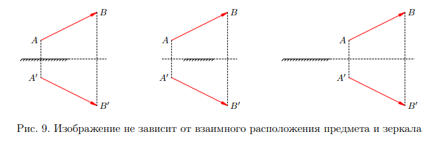 Расположение объекта относительно зеркала и размеры самого зеркала никак не оказывают влияния на изображение (рис. 9).